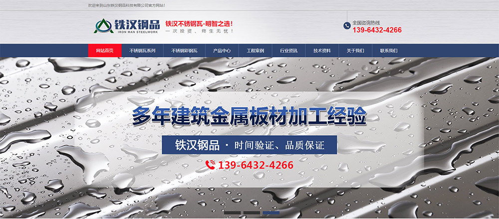 【公司簡介】:山東鐵漢鋼品科技有限公司是一家專業生產建筑用不銹鋼壓型板、不銹鋼彩涂瓦、不銹鋼天溝、鍍鋅板天溝、不銹鋼C型鋼等新型建材的實體型企業。